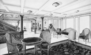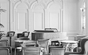 “Saloon orchestra” referred to the trio of musicians that performed for patrons of the à la carte Restaurant and Cafe Parisien. This was their only performance venue, and even though they played in the Reception Room, the intention was for their music to soften the air for the diners who supped and socialized in the luxurious saloon.